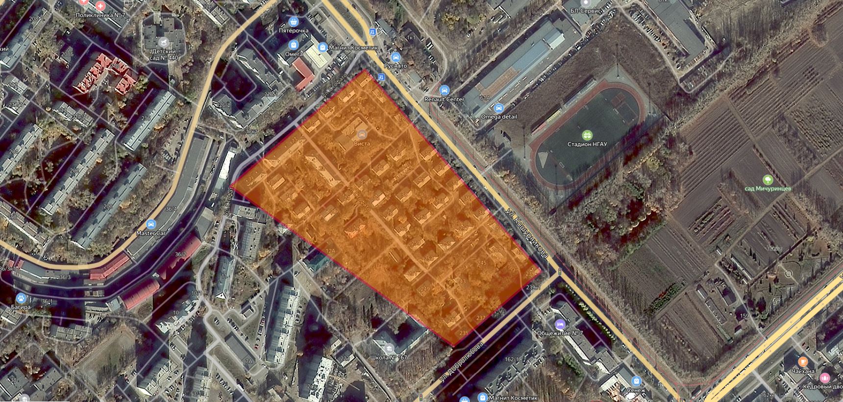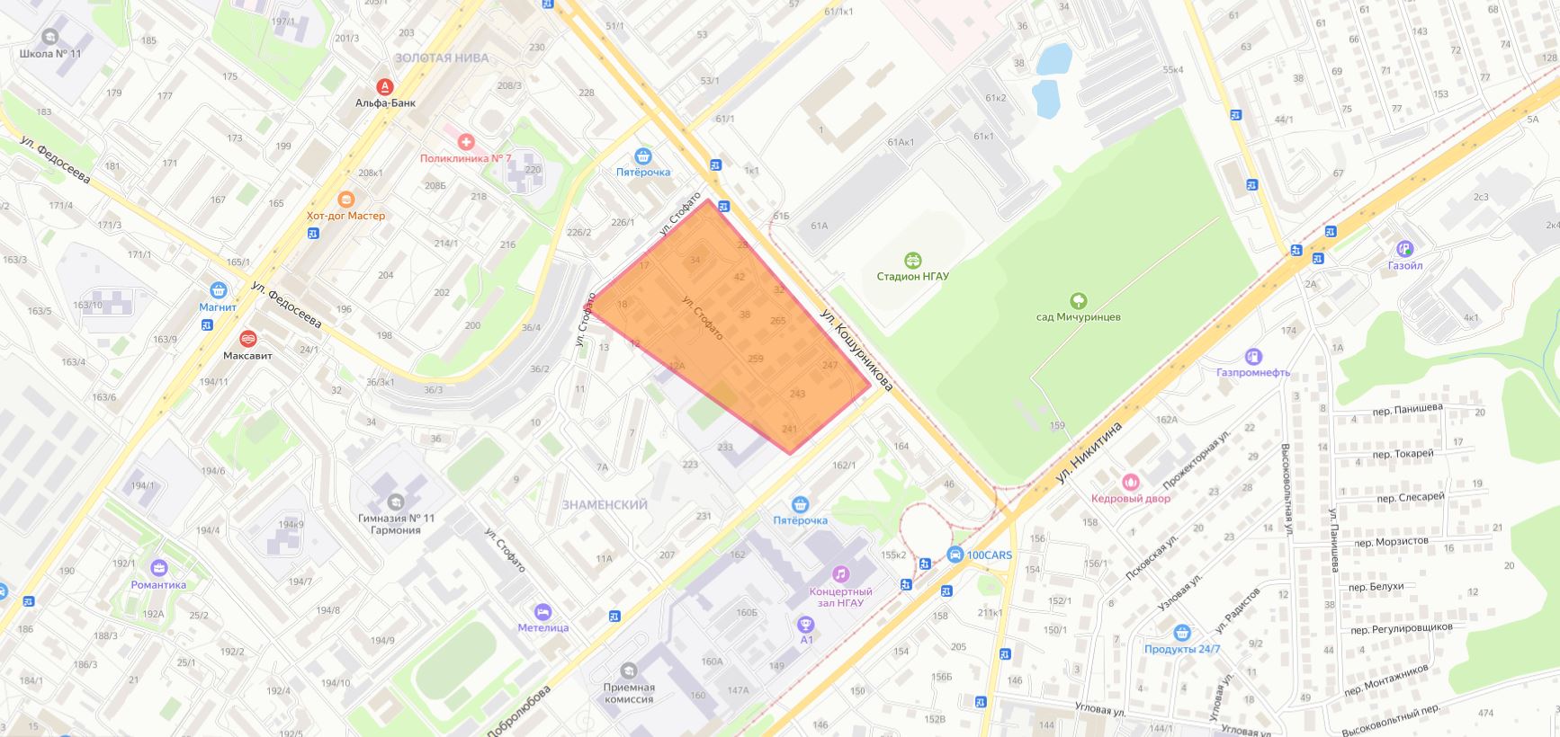 Возле метро “Золотая нива” по улице Кошурникова в Новосибирске планируют снести целый квартал, состоящий из 41 двухэтажного дома. На освободившемся земельном участке планируется возведение новых современных многоэтажных жилых комплексов.